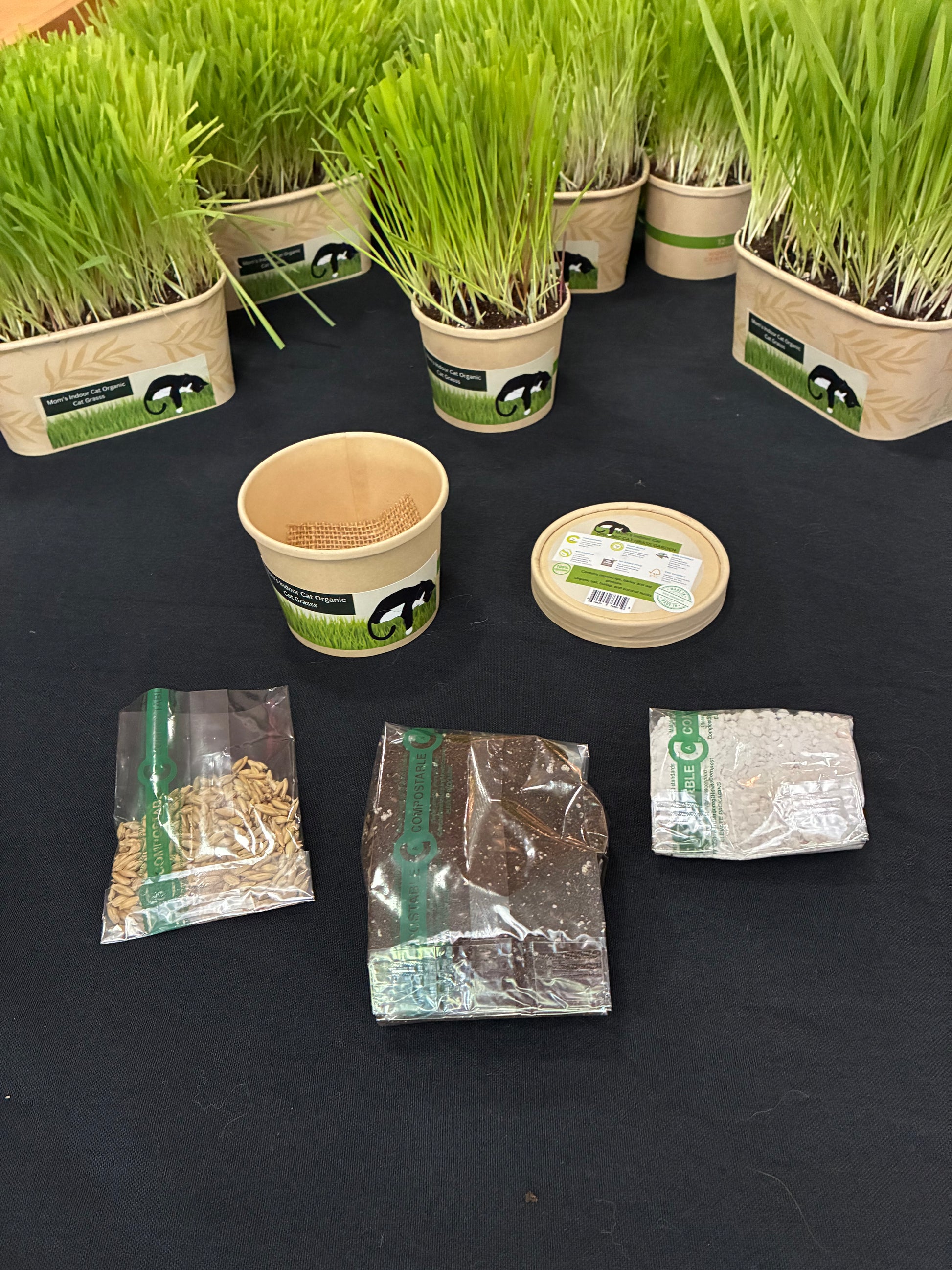 100% compostable containers with organic non GMO grass and soil.
